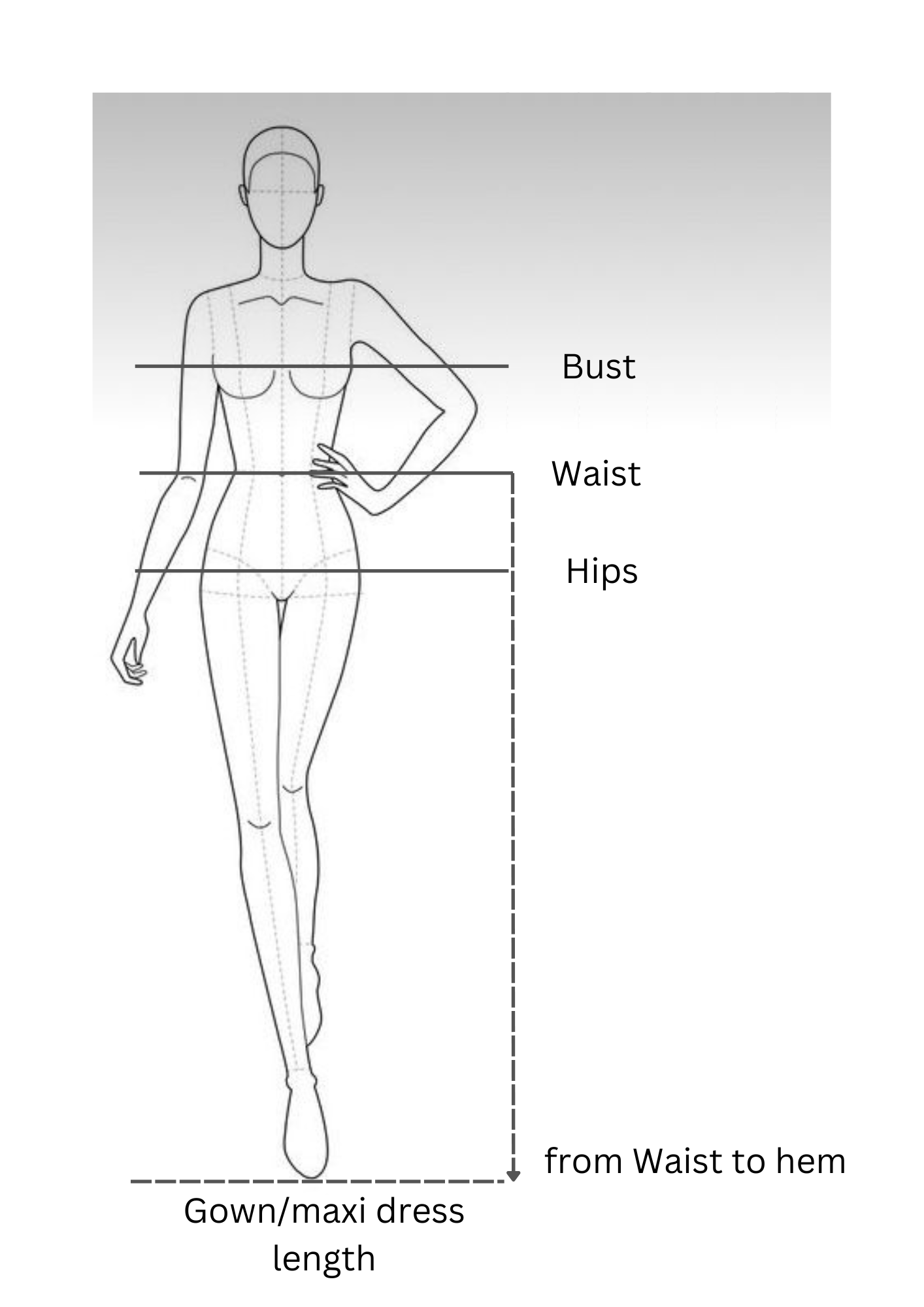 Length from the shoulder to the waistline and length from the waistline to the feet: These two measurements are also required, especially when the customer wants to customize the dress regarding the size.